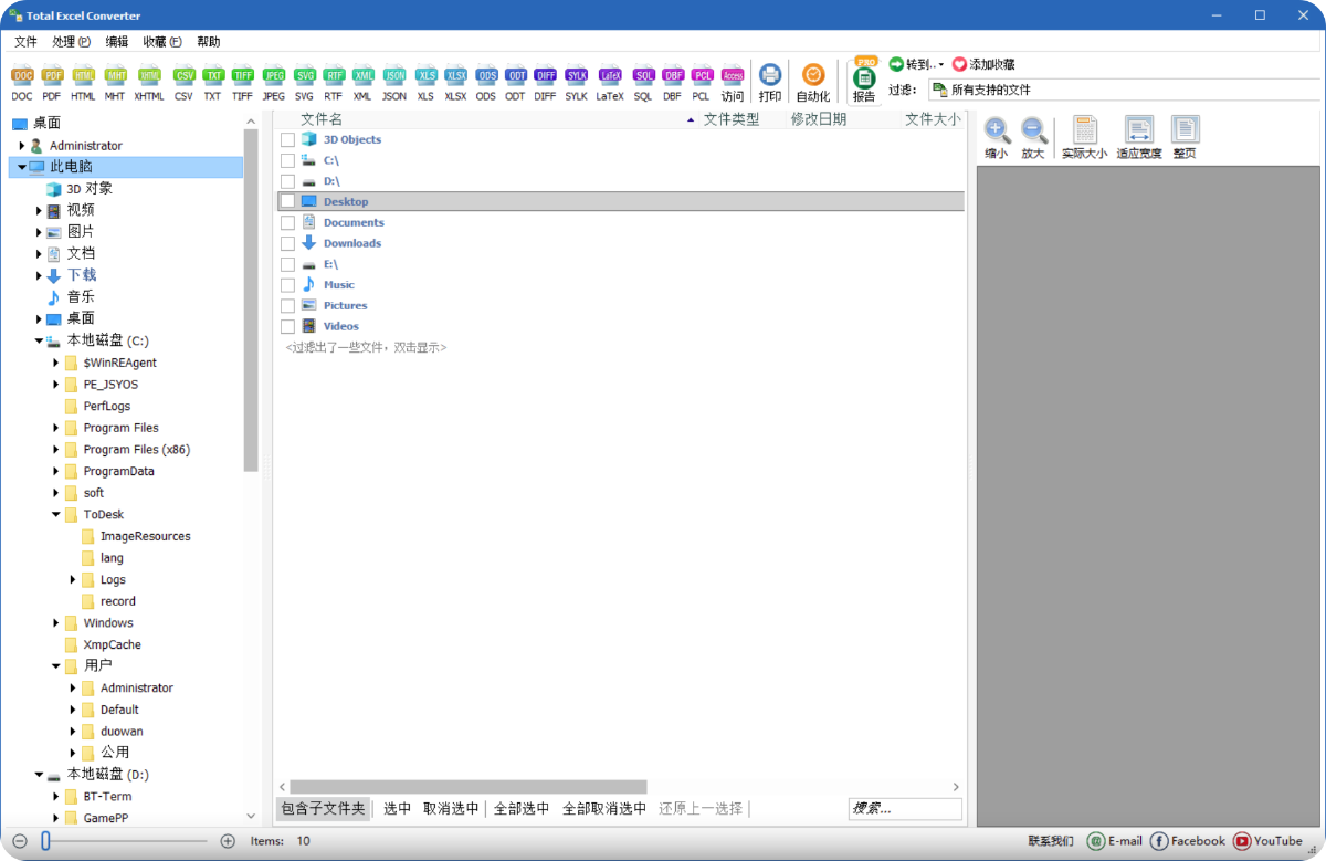 提供预览功能,可在转换之前预览文件内容。