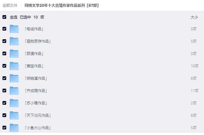 十大言情作家作品系列〖67部〗小说合集 【txt格式】 208M