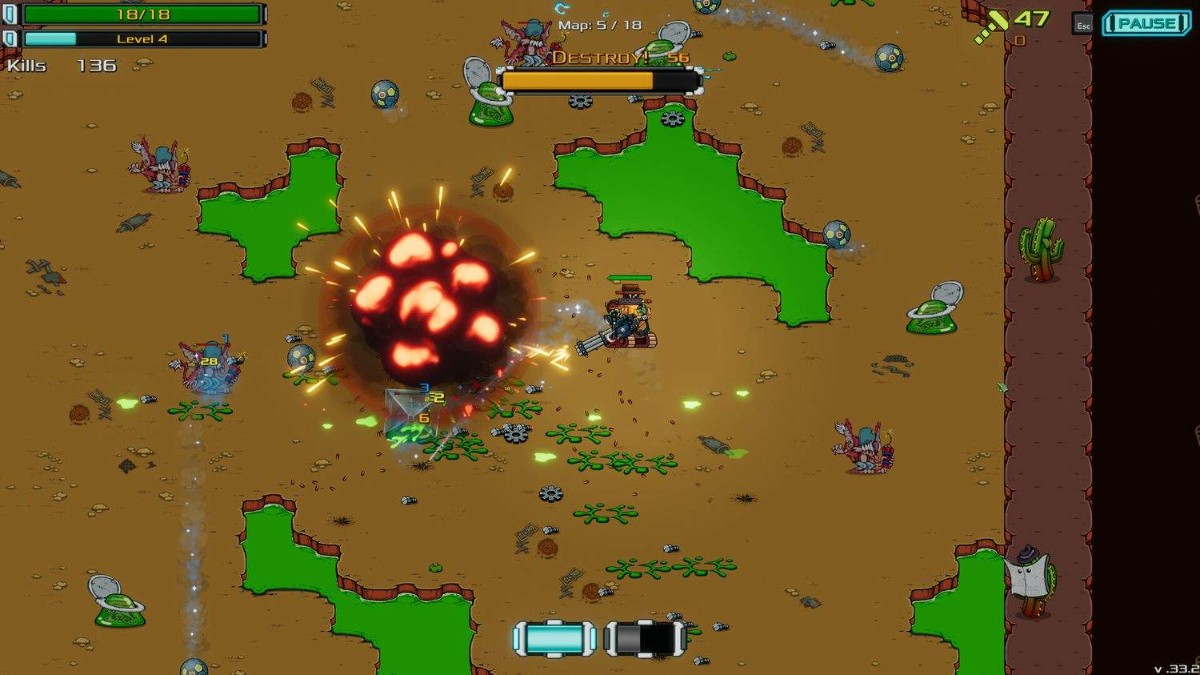 准备好迎接一场癫狂且奇幻的战斗,装备核弹足球或是电磁脉冲灭火器倾泻成吨火力直接把敌人轰成渣渣!用战场上的钢铁和爆弹掀起一场视觉盛宴!迈出死亡旋风般的步伐,并用敌人的鲜血或是机油涂满大地!在海啸般敌人的阵列中碾碎一切阻碍!