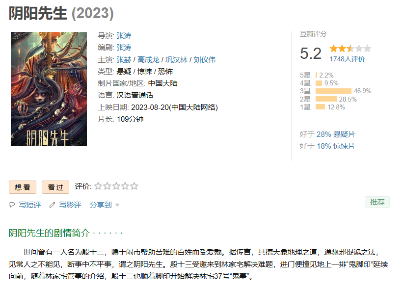 ❤️【国产民俗惊悚恐怖片】阴阳先生【2023】4K/2160P [国语中字] [3.4G]