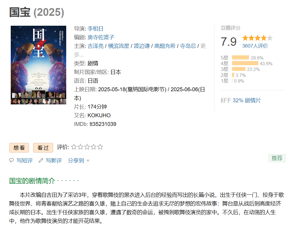 ❤️【刷新岛国影史票房的歌舞伎题材剧情片】国宝【2025】BD1080P [中英字幕] [5.7G]