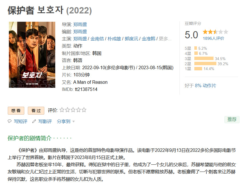 ❤️【韩国动作爽片】保护者 보호자【2022】BD1080P [繁体中字] [2.6G]