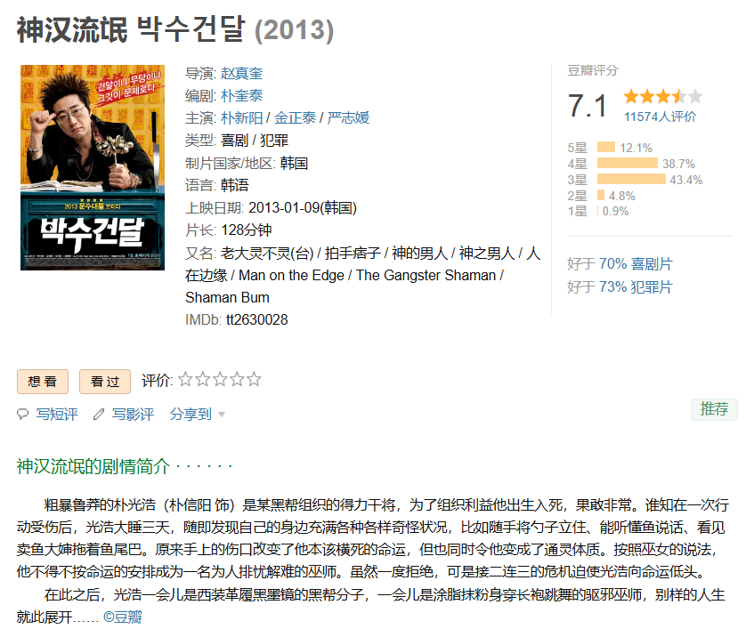 ❤️【韩式爆笑喜剧片】神汉流氓 박수건달【2013】BD1080P [中文字幕] [2.7G]