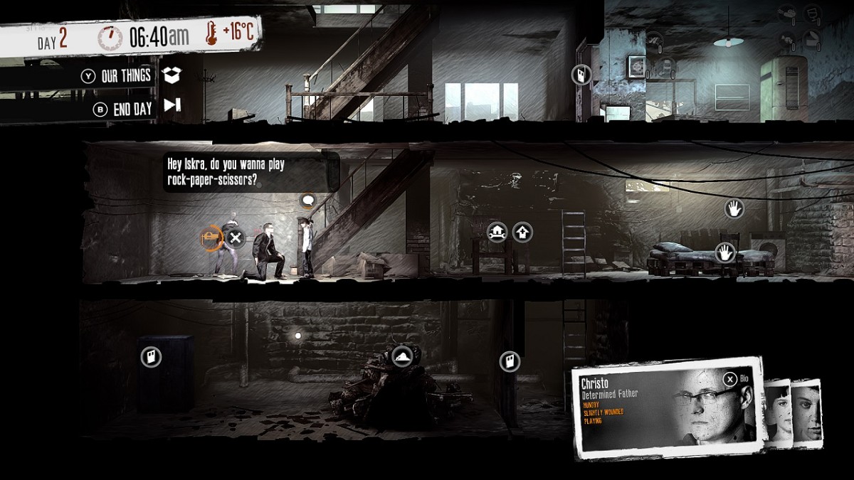 《这是我的战争》别称《我的这一战》,是由11 bit工作室所制作的黑暗求生游戏,本作与一般的战争游戏不同,玩家控制的并不是什么士兵,而是一群在战火中求生存的平民,开发商给出的理念是让玩家从另一个角度去看待战争。战争是游戏常用的故事背景,因为它能为玩家提供最直接的游戏目标:杀死敌人获胜。但历史告诉我们,任何战争,最大的受害者永远是平民。而市面上无数的军事游戏,几乎没有一款对这些无辜的平民的处境进行描绘,而本作将填补这一空白。